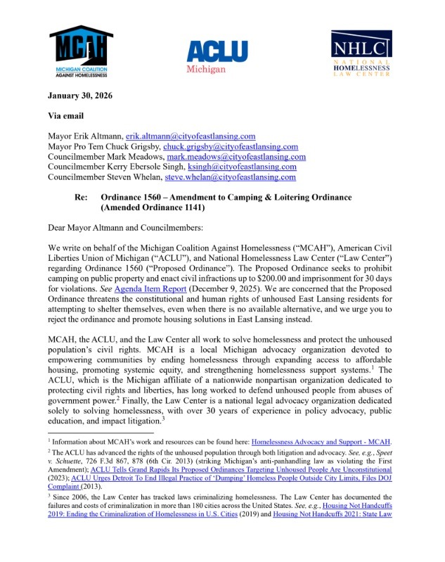 Advocate for Your Neighbors: Ask East Lansing City Council to Vote NO on Ordinance 1560